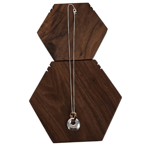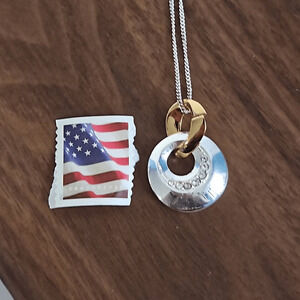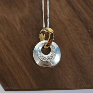 SAQ Women's Silver And Gold Tone Donut Pendant Necklace Thin Silver Tone Chain