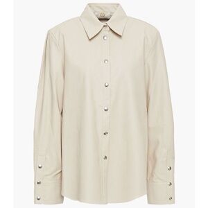 SARA BATTAGLIA Beige Faux Leather Oversized Boxy Snap Button Up Shirt Jacket L
