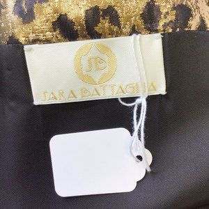 Description: Sara Battaglia Gold Metallic / Black Leopard Printed Wrap Dress. Style number SB5010 305 098.