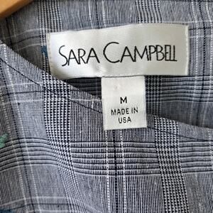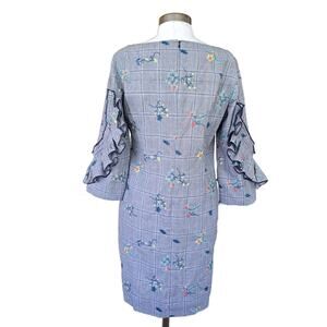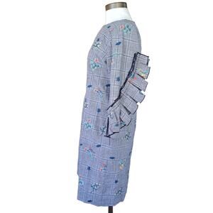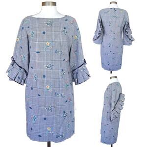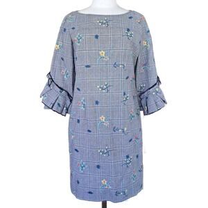 SARA CAMPBELL Navy Plaid Floral Embroidered Shift Dress Medium Preppy