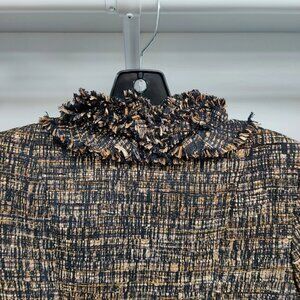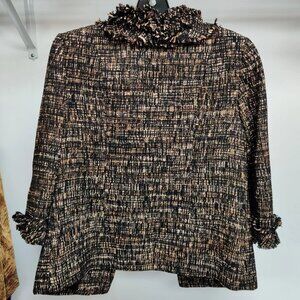 SARA CAMPBELL Open Blazer Jacket Fringed Ruffle Accents Black Brown Neutral 2