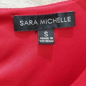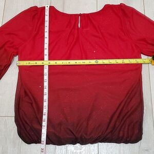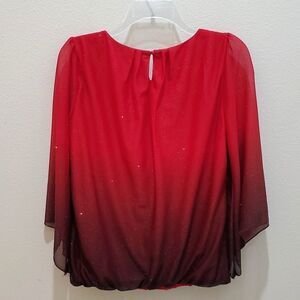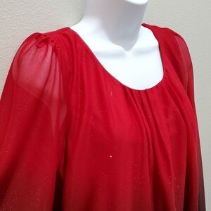 SARA MICHELLE BLOUSE, Sz S, RED SPARKLING, POLYESTER, 3/4 SLEEVE, SCOOP NECK, Lightly worn, like new