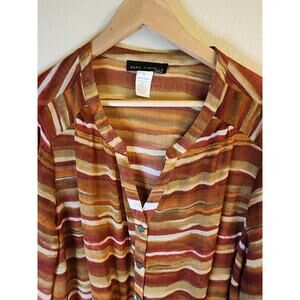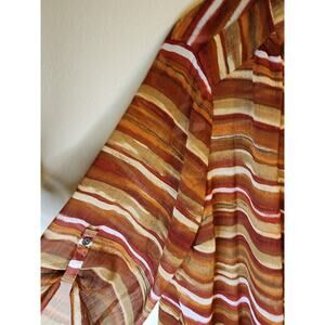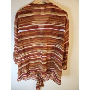 SARA MICHELLE Women's Brown and Yellow Semi Sheer Blouse with Tie Waist SZ 3X