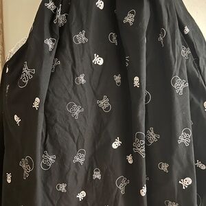 SARA USA Black Skull Skirt Midi Aline with white skulls Elastic Waist Size Large So much fun New without tags perfect for Halloween or for a fun outfit anytime.