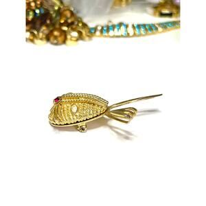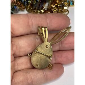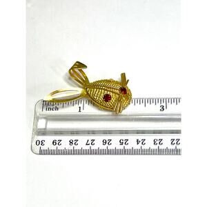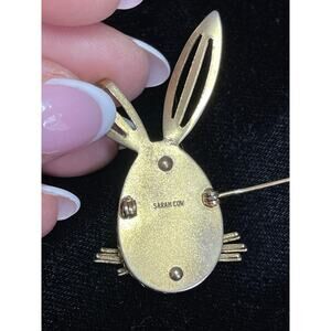 SARAH COV Bunny Brooch Red Gold Rabbit Vtg Estate Jewelry Vintage Pin N20