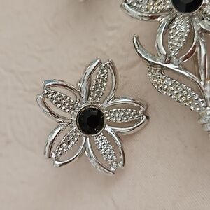 SARAH COV Silver Tone & Black Stone 3 Piece Set. Lovely set to be wore at anytime with any clothes.