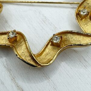 SARAH COVENTRY Large Gold Tone Wreath Ribbon & Rhinestone Pin Brooch Vintage