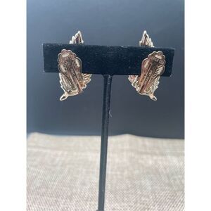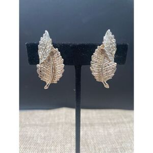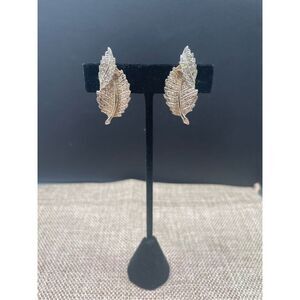 EUC. SARAH COVENTRY Leaf Shape Clip Earrings, LT. Gold Tone Metal, Crystals