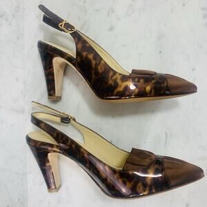 SARAH FLINT Perfect Sabina Sling 85 37-1/2 Tortoise Patent Espresso Satin EUC