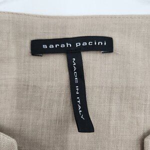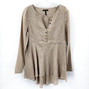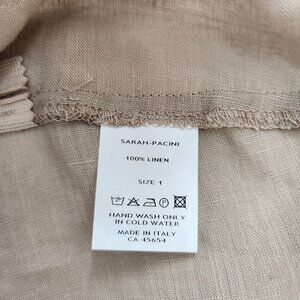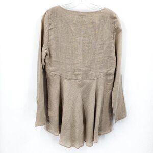 SARAH PACINI Long Sleeve 1/2 Button Linen Tunic Top Natural Beige