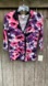 Dark floral cardigan in pinks, purples and black.