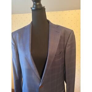 Elegant navy suit in excellent condition. No flaws. Size is 38R. The pants are 32 by 30 and there is space to get them tailored and make longer.