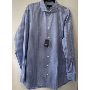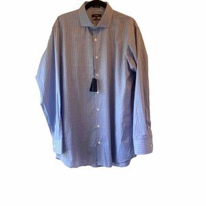 Beautiful designer shirt made in Turkey. 100% cotton. Blue and white plaid design. Perfect for professionals and or party goers. No flaws to notate.