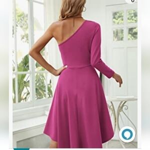 SARIN Mathews One Shoulder Long Sleeve A-Line High Low Skater Cocktail Pink