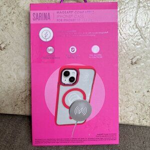 Here is a SARINA IPHONE COMPATIBLE CASE For iPhone 15/14/13 MAGSAFE compatible Pink and clear