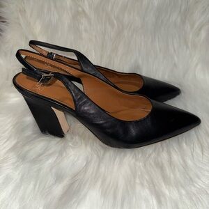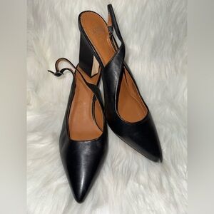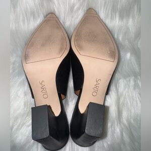 Elevate your style with these sophisticated black heels from SARTO By Franco Sarto. Crafted with a sleek design, they offer a polished look perfect for any occasion. The smooth leather finish adds a touch of elegance to your ensemble.