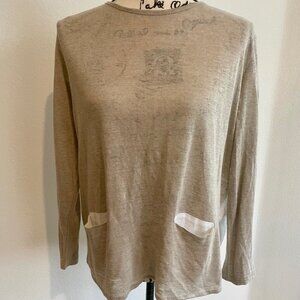 SARTORIAL SARACENA ANTHROPOLOGIE 100%LINEN BLOUSE SZ M TAN WHITE MADE IN ITALY