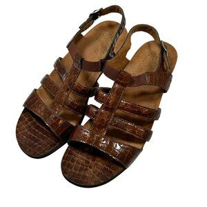 SAS Allegro Cognac Croc Heel Slingback Sandals Womens 9.5 M Medium