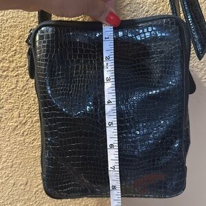 SAS Black Organizer Alligator Patent Leather Handbag Crossbody Purse USA