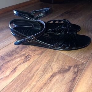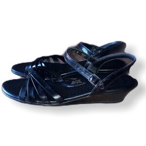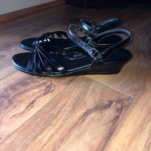 SAS Black Tripad Strippy Comfort Leather Narrow Sandals