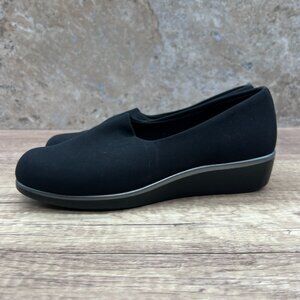 SAS Bliss Womens Shoes Size 7.5 Wide Comfort Black Wedge Slip On Made In USA