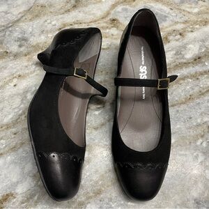 SAS Cate Mary Jane kitten Heels Shoes Black Suede Leather size 7W