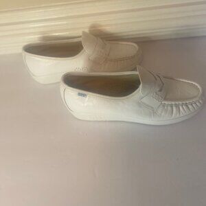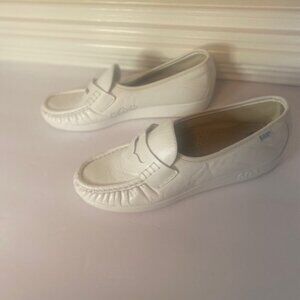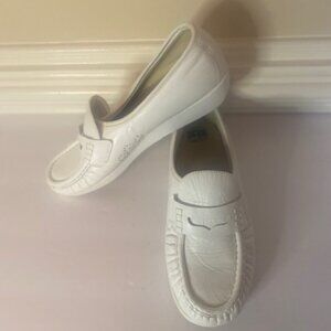 SAS Classic White Leather Slip On Penny Loafers Women's, size 9W