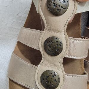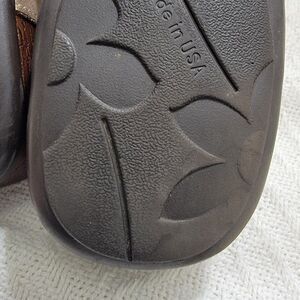 Cork footbed. Almost no wear on the soles as shown. Small scratch on the front leather strap as shown