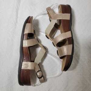 SAS Clover T-Strap Sandal Lusso Capp size 7 W Wide Comfort Wedge Open Toe