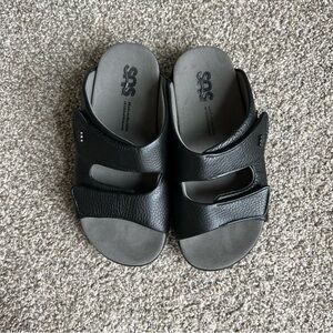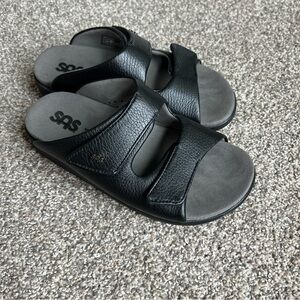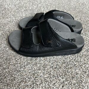 SAS Leather Encore Slide Sandal Black, Adjustable Strap, Size 6