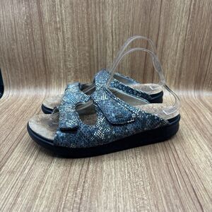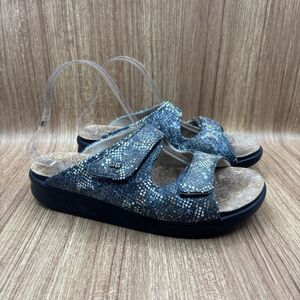 SAS Cozy Slide Sandal Leather Multisnake Navy Tri Pad Comfort Adjust Size 9 M