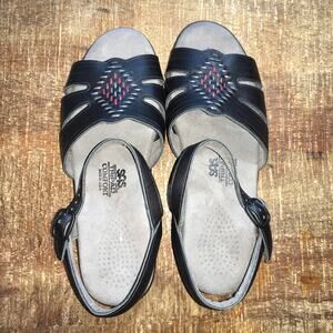 SAS Huarache Quarter Strap Sandals in color Black. Womens size 7 M. Red and gray accents. Condition as seen in pictures.