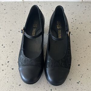 SAS Isabel Mary Jane's Size 8M Black/Snake Leather Shoes Made in USA EUC