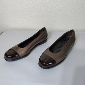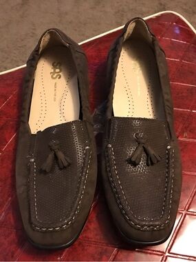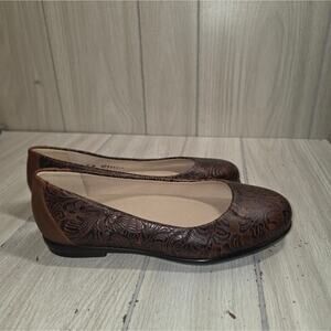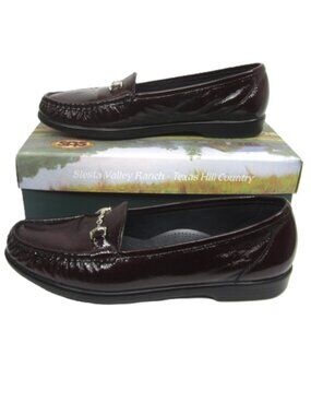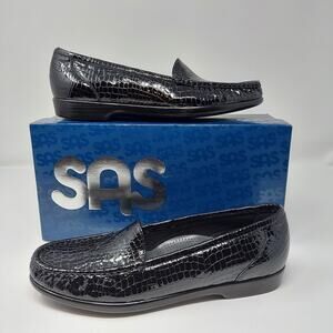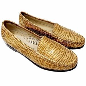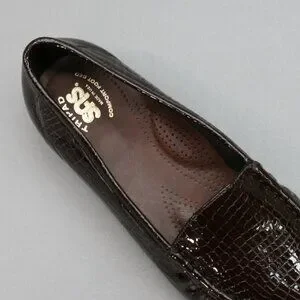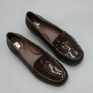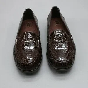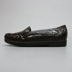SAS Ladies 9.5 WW Extra Wide Simplify Brown Patent Croc Flats Loafers Shoes USA