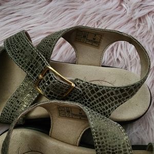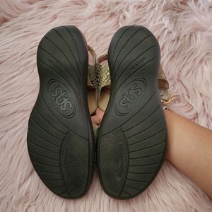 SAS Laguna olive leather metallic gold snake print comfort cross strap