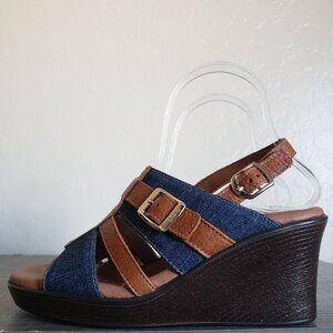 SAS Layla Denim Leather Wedge Sandal Blue Jean Women's 6 Strappy Comfort