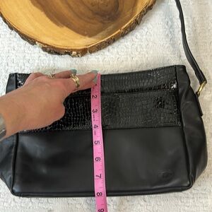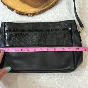 SAS Leather Bag Black Patent Leather Croc Pattern Trim Shoulder Purse Vintage