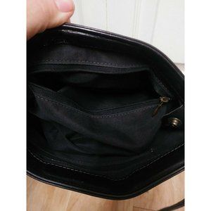 SAS Leather Shoulder Bag BLACK Purse VINTAGE hinge