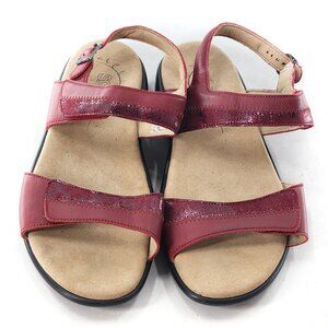 SAS NWOB Nudu Two-Toned Leather Heel Strap Sandals Red Slingback Comfort Shoes Arch Support Summer Casual Open Toe Buckle Closure Metallic Adjustable Width / Strap Soft Footbed