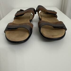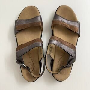 SAS Nudu Leather Sandals Two Tone Pewter Bronze Metallic Comfort Casual Sz 10