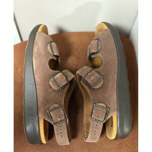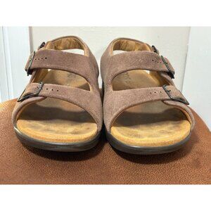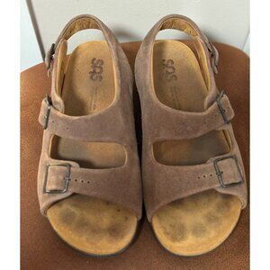 SAS RELAXED SUEDE SANDALS WOMENS 9W BROWN OPEN TOE TRIPAD COMFORT SLINGBACK