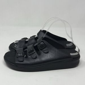 SAS Relaxed Slide Sandals Womens 9 M Black Leather 3 Strap Comfort Casual