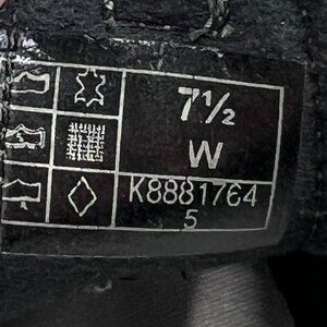 Comfort shoe with leather upper with cutout design, adjustable leather strap, removable footbed, polyurethane outsoles. Color: metallic brown. Preowned in like new condition. Clean uppers, insoles, and outsoles. Very little signs of wear.