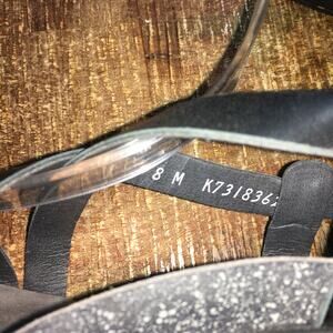 This is a pair of SAS San Antonio Shoes Nouveau Cross Strap Heel Sandal in color Black. Womens size 8 M. Adjustable buckle strap. Leather upper. 1.75" Heel. Made in USA.