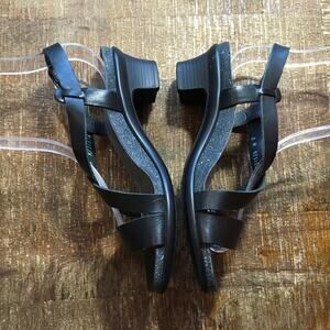 SAS San Antonio Shoes Nouveau Leather Cross Strap Heel Sandal Black Womens 8 M