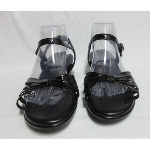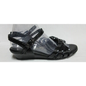 SAS Sandals Women 9W Black Comfort Shoes Wedge Heel Buckle Open Toes Made USA