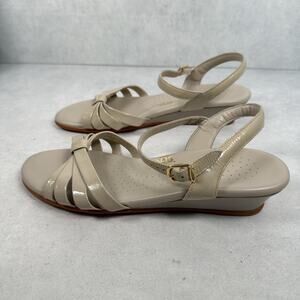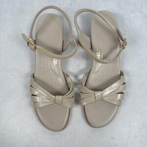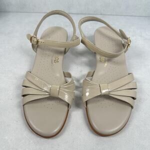 SAS Sandals Womens Size 10 N Beige Patent Leather Wedge Bow Made USA F18882