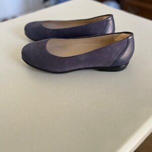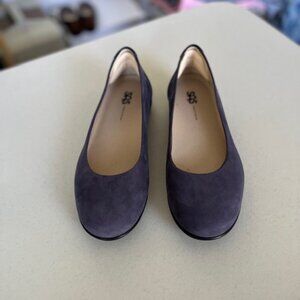 Like new without box. Never worn. Size 9 wide. These flats from SAS are made of genuine suede leather in San Antonio, Texas. I bought them for myself, but they are slightly too big for me. I placed a small heel cushion inside each heel in an effort to be able to wear them, but they do not fit me. The heel cushion is removeable. They are of outstanding quality. I hope someone else can use them!