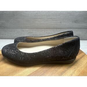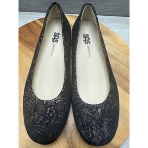 SAS Scenic Black Lace Leather Ballet Flats Floral Slip On Shoes Size 6.5 M