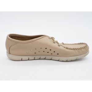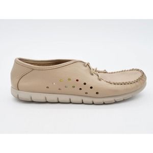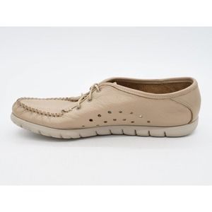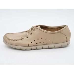 SAS Shoes Womens 8 Beige Leather Perforated Moc Toe Lace Up Comfort Low Top USA